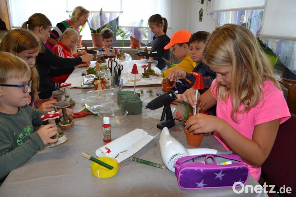 Zum Wandern und Basteln waren die Moosbacher Ferienkids mit ihren Betreuerinnen Claudia Rappl und Beate Kleber unterwegs. Ziel war die Bastelstube bei Angela Putzer im Geschenke-Paradies in Grub. Es wurden kleine Herbstgestecke im Blumentopf und Filzpilze unter der Leitung von Angela Putzer hergestellt. Außerdem wurden Eierkartons wiederverwertet und daraus Pilze gebastelt und bemalt.