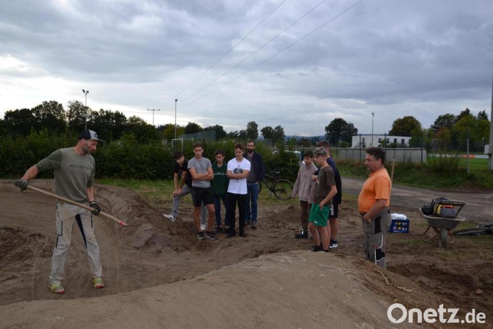 Jugendbeauftragter Stefinger und Robert Rieger von der Planungsfirma Ride Time aus Treuchtlingen erläuterten das Projekt. „Pumptrack heißt das Gelände, weil man darauf mit dem Fahrrad Pump-Bewegungen ausführt. Wie bei einer Luftpumpe.“ Profis kommen mit dieser Technik über die Strecke, ohne ein einziges Mal in die Pedale zu treten, sagte Stefinger. Auch Anfänger könnten das lernen. Jeder, der ein einigermaßen geländetaugliches Fahrrad besitze, könne sich hier austoben, erklärte Robert Rieger.