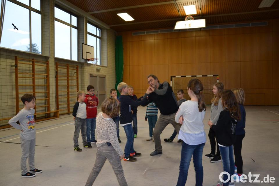 Schörner unterrichtete die Schüler der Trautwein-Grundschule Moosbach in vier Kurseinheiten. „Nicht mit mir“ lautet der Titel des Kursprogramms des deutschen Ju-Jutsu-Verbands. Es ist eine moderne Form waffenloser Selbstverteidigung.