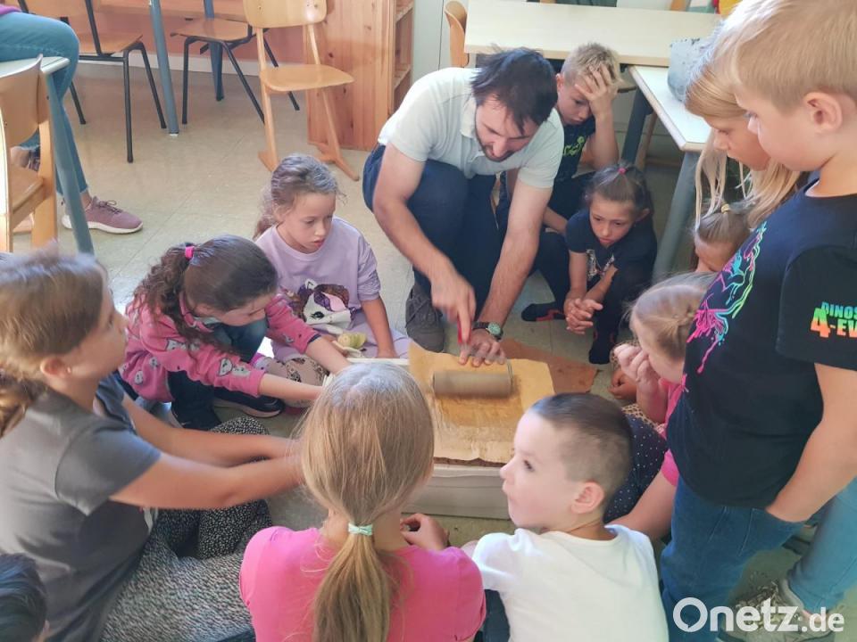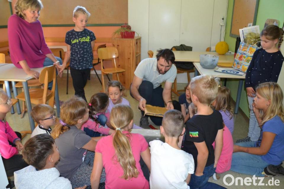 Natürlich wollten die 16 Kinder testen, wie sich dieser Brei anfühlt und beim Papierschöpfen mithelfen. Es durfte auch das Schreiben auf dem fertigen Papier ausprobiert werden. Die Betreuerinnen Birgit Gerlach-Kneißl und Beate Kleber bedankten sich zusammen mit den Kindern beim Referenten für die kreative und informative Einführung zum Papierschöpfen, das bei den Kindern großes Interesse weckte.