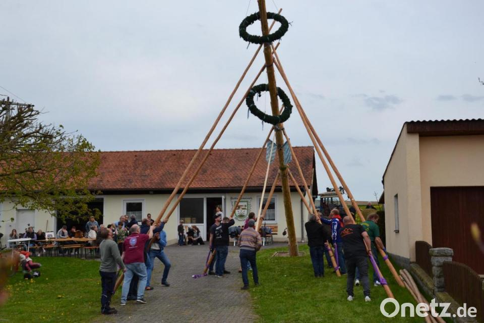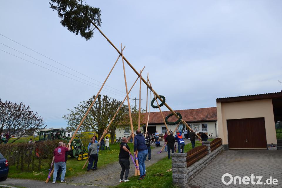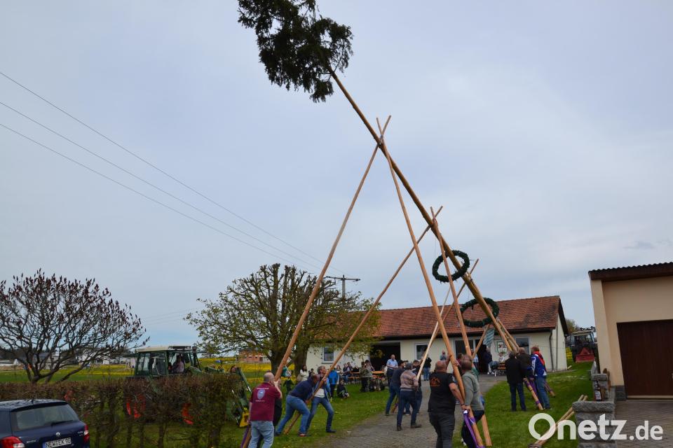 Die Siedlergemeinschaft stellte traditionsgemäß ihren Maibaum am Siedlerhaus auf. Der 27 Meter hohe Baum wurde um drei Meter auf 24 Meter gekürzt. Beim Aufstellen ging alles sicher über die Bühne. Der Frühlingsbote wurde gebührend durch die vielen Besucher gefeiert. Die aktiven Siedler mit ihrem ersten Vorsitzenden Peter Ries und dritten Vorsitzenden Georg Kleber durften den Baum aus dem Gemeindeholz holen. Zwei Tage zuvor haben sie ihn abgesägt und im Wald liegen gelassen. Als sie ihn aus dem Holz holen wollten war der Baum weg.