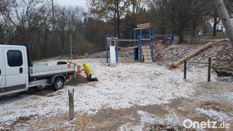 Beim neuen Spielplatz im Kurpark fehlen aktuell noch die Wippe, die Nestkorbschaukel, der acht Meter lange Balancierstamm und der Backtisch. Auch die vom Waldverein Moosbach vor einigen Jahren spendierte „Arche Noah“ wird auf dem neuen Spielplatz einen Platz finden.