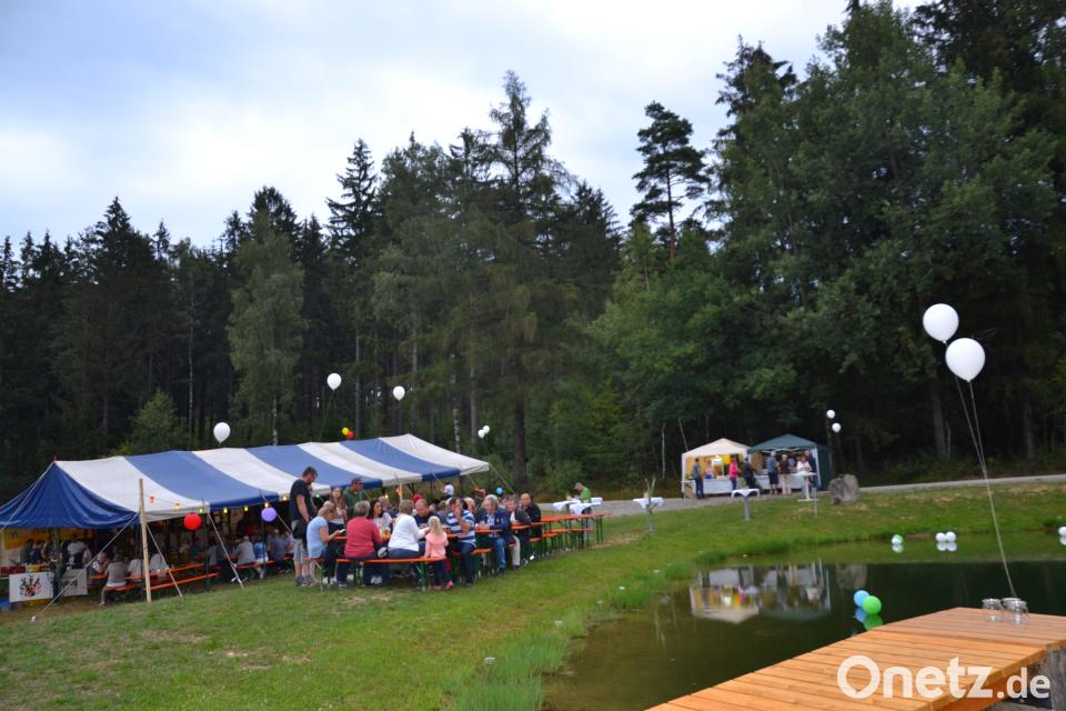 (gi) Die KLJB mit ihren Vorsitzenden Katja Ach und Franziska Weiß hatten alles bestens organisiert. Nur durch gute Zusammenarbeit konnte alles gestemmt werden. Die Mitglieder hatten extra ein Zelt aufgebaut. Auch am Badeweiher luden Stehtische, Bänke und Tische zum Verweilen ein. Bunte Lichterketten beleuchteten am den Badeweiher. Das Umfeld am Zelt war mit Luftballons und Lampions geschmückt. Auf dem Wasser schwammen Luftballons mit LED-Lichtern.