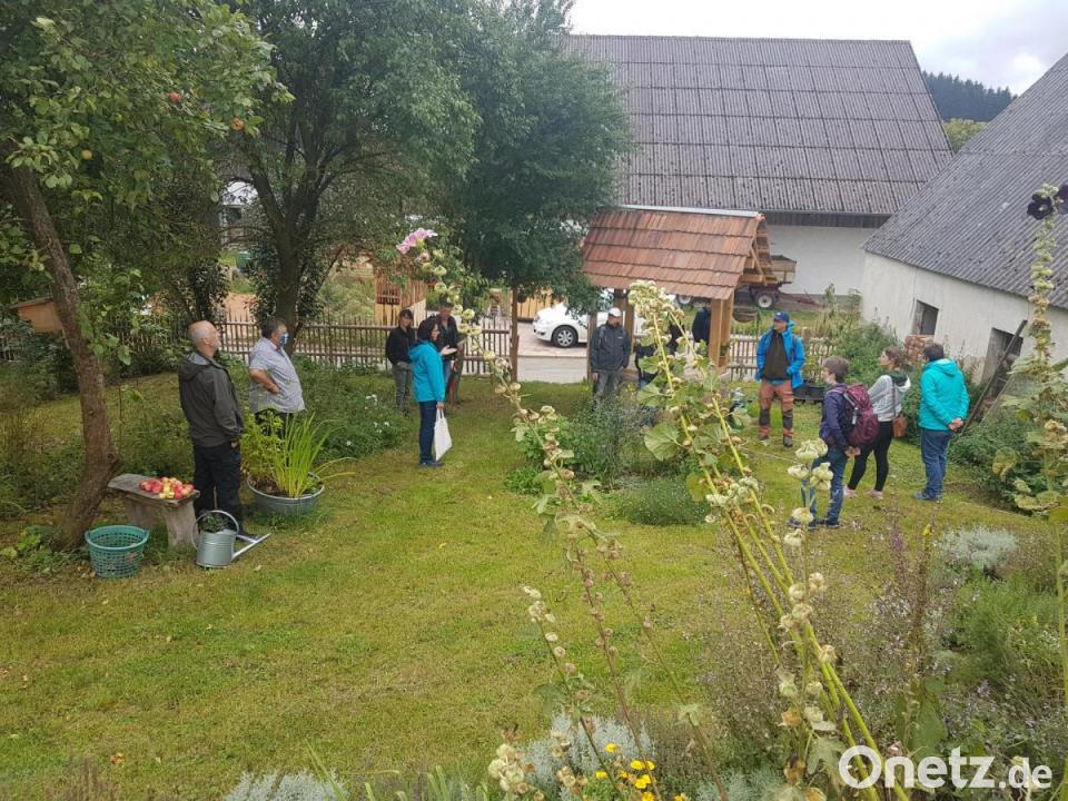 Der Landschaftsökologe Hofmann stellte sich vor. Zunächst wurde der kleine Hexengarten besichtigt. Hier bewunderten die Gäste den Hopfen, der gerade von erntereifen Dolden übersät ist. Claudia Schmid stellte ihn als wertvolles Schlafmittel vor. Im unweit davon entfernten großen Hexengarten wurde zunächst auf die Brennnessel eingegangen, die dreimal im Jahr geerntet werden kann. Den Samen der Brennnessel nannten die beiden Referenten als „einheimisches Superfood“ mit zahlreichen Vitaminen und Mineralstoffen.