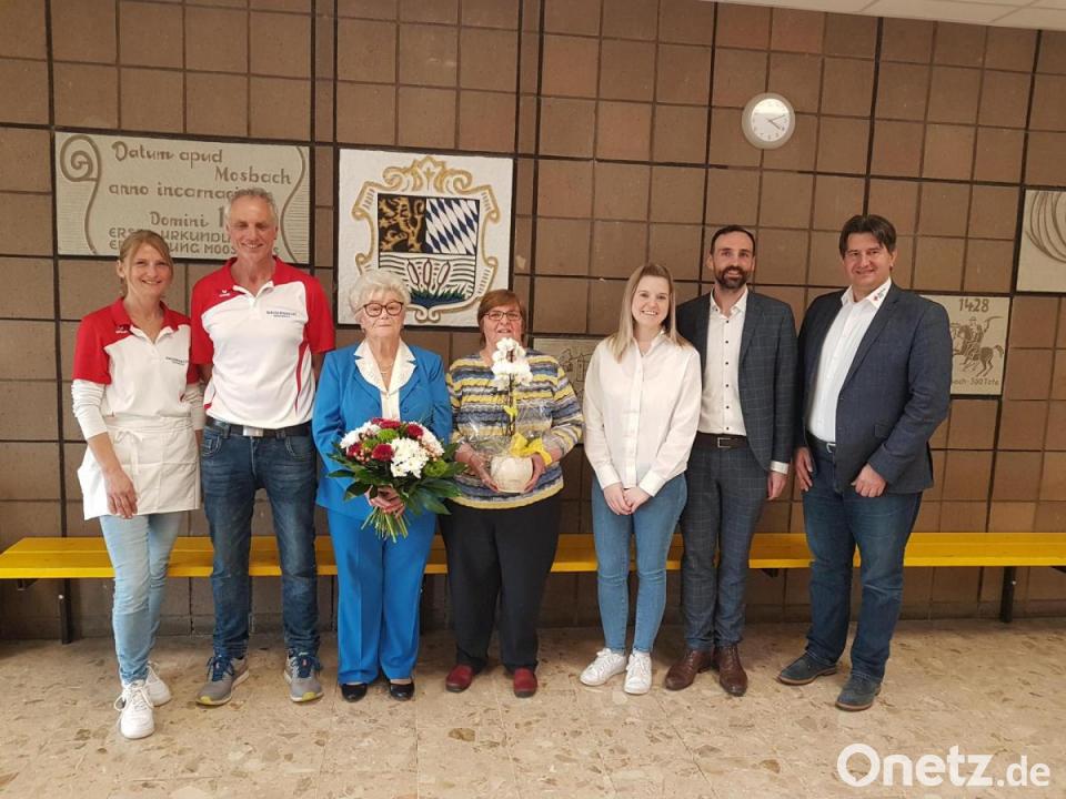 Unter den Teilnehmern der BRK-Wassergymnastik sind auch solche, die seit der ersten Stunde ins Hallenbad kommen und etwas für ihren Körper tun. Ihnen dankte Bulenda, Hofmann überreichte er einen Blumenstrauß und einen Gutschein. Er wünschte ihr weiterhin alles Gute. Dafür gab es großen Applaus. Hofmanns Dank galt auch Schwimmmeister Karl Ulrich. „In den 35 Jahren habe ich nie ein böses Wort von dir, lieber Karl, gehört.“ Maria Ulrich würdigte die Leiterin ebenfalls. Sandro Gallitzendörfer von der Wasserwacht Weiden dankte Hofmann für 35 Jahre als ehrenamtliche Leiterin der BRK-Wassergymnastik. Er freute sich, dass so viele Menschen das Angebot der Wasserwacht im Hallenbad annehmen. Noch viel mehr Menschen wollten das Angebot im Hallenbad nutzen. Wegen Personalmangel gehe das leider nicht. Das BRK suche deshalb nach ehrenamtlichen Übungsleitern. Das Hallenbad Moosbach ziehe auch wegen seiner angenehmen Wassertemperatur die Badegäste nur so an. Sandra Görlisch vom BRK-Kreisverband Weiden dankte Hofmann ebenfalls. Anschließend ehrte die Vohenstraußerin Anneliese Franke, die seit 35 Jahren der Wassergymnastik angehört. Die Wasserwacht Moosbach mit Vorsitzender Sandra Bodensteiner sorgte für das passende Ambiente in der Turnhalle sowie für Kaffee und Kuchen.