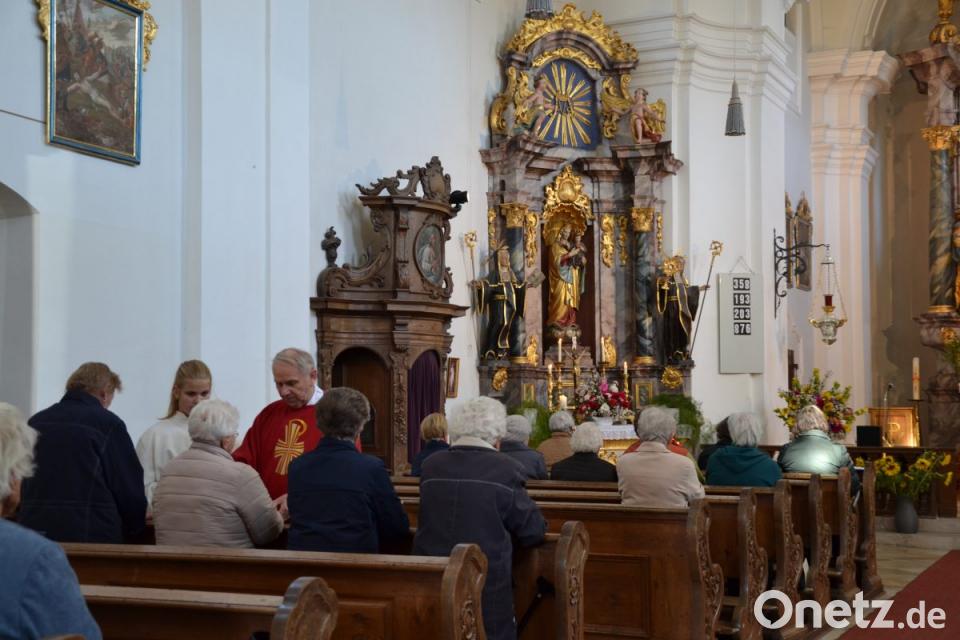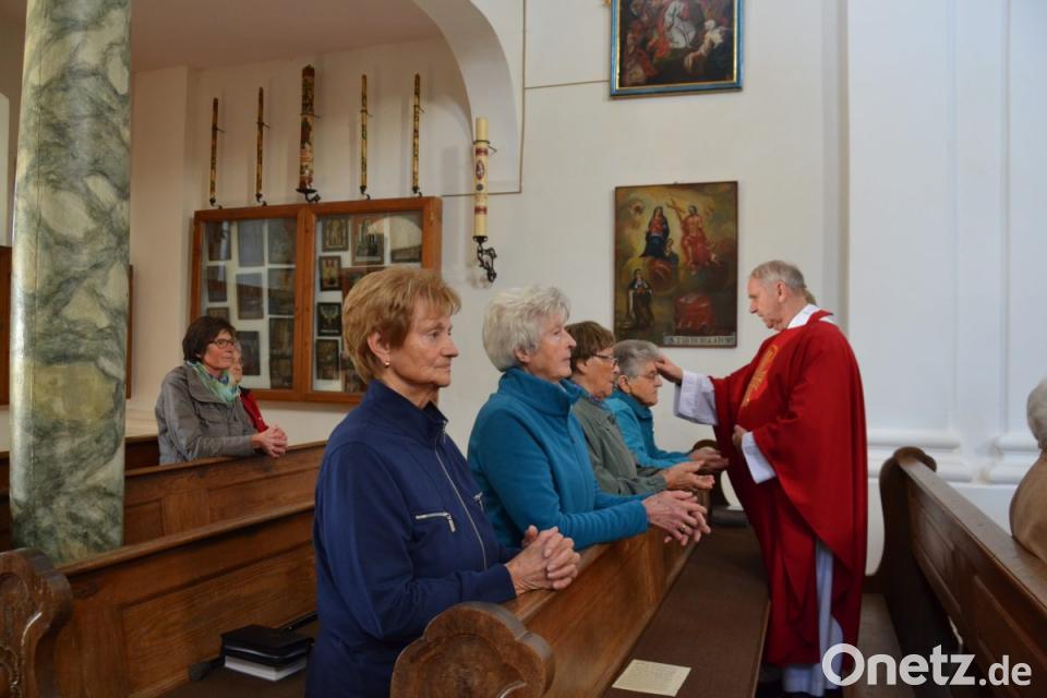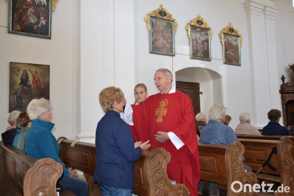 Bei der Begrüßung erinnerte der Geistliche, dass seit Allerheiligen 36 Mitchristen, davon vier in Etzgersrieth, verstorben sind. Darunter war auch Ruhestandsgeistlicher Pfarrer Hermann Schötz, der im letzten Jahr noch mit die Krankensalbung spendete. Der Priester sprach bei der Salbung von Stirn und Hände mit hl. Öl das Segensgebet: „Durch diese heilige Salbung helfe dir der Herr in seinem reichen Erbarmen, er stehe dir bei mit der Kraft des Heiligen Geistes. Der Herr der dich vor Sünden befreit, rette dich, in seiner Gnade richte er dich auf.“ Neben den gemeinsam gesungenen Seniorenlied „Wem Gott ein langes Leben gibt, der soll sich dankbar zeigen“ und dem Gebet „So nimm denn meine Hände und führe mich.“ Der Seelsorger ging auf das Übersetzungsfest ein. Bei der Predigt sagte der Geistliche, dass Gesunde und Kranke andere Gedanken haben. Viele Gedanken und Wünsche haben Gesunde. Kranke haben nur den Wunsch, wieder gesund zu werden. Sie haben viel Leid zu ertragen und Zeit zum Meditieren. Fragen wir nicht warum, weil Gott größer ist. Pfarrer Most erinnerte an das Kreuz und den Gegeißelten Heiland. Viele Pilger haben ihr Leid über zwei Jahrhunderte hier her getragen, um Heil zu erfahren.