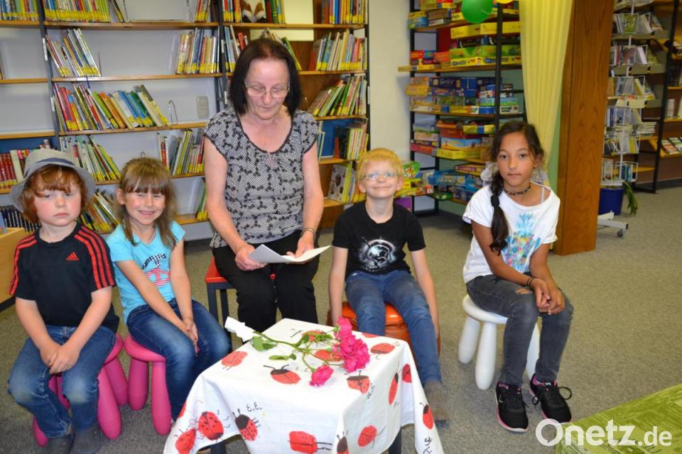 Sie las ihnen das weniger bekannte Märchen der Gebrüder Grimm „Von dem Sommer- und dem Wintergarten“ vor und band die Kinder mit ein. Ein Kaufmann musste verreisen. Er fragte seine drei Töchter was er ihnen mitbringen sollte. Die eine wollte ein schönes Kleid, die andere hübsche Schuhe und die dritte eine Rose. Diese war schwer zu kriegen, weil es Winter war. Da kam er an ein Schloss, da war halb Sommer und halb Winter. Da bediente er sich und nahm eine Rose mit. Als er ein Stück geritten war, verfolgte ihn ein großes schwarzes Tier das rief, gib mir meine Rose wieder sonst mache ich dich tot. Der Vater versprach ihm die schönste Tochter zur Frau zu geben um ihn los zu werden und ritt davon. Dieses Tier holte jedoch das Mädchen nach acht Tagen in sein Schloss. Zum Schluss sprang aus dem Tier ein Prinz heraus und es wurde Hochzeit gehalten und der Garten blühte besonders schön.