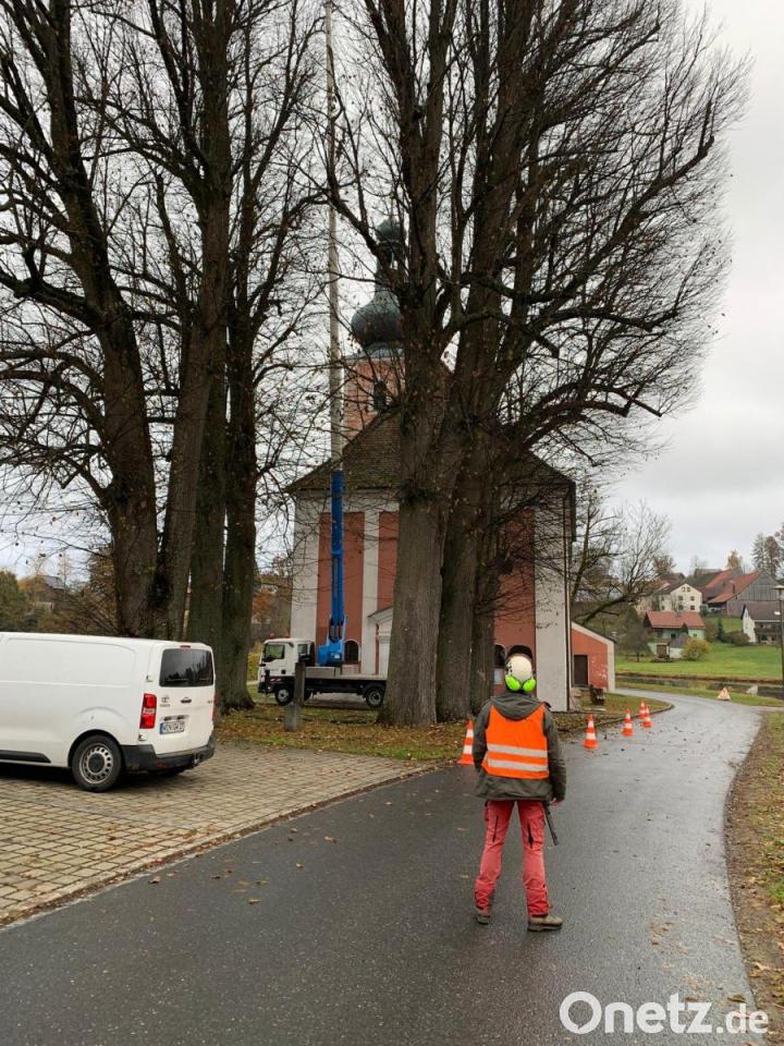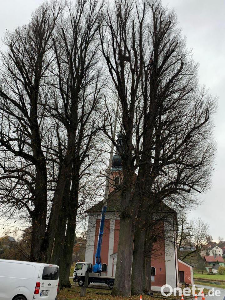 Gemeinsam mit der Kirchenverwaltung wurden die Arbeiten an die Firma Baumpflege Lachmann, Forst- und Umweltökologe (MSc), Weiden, übergeben. Diese führte die Arbeiten zur Wiederherstellung der Verkehrssicherheit durch. Dabei wurde festgestellt, dass die rund 250 Jahre alten Bäume aus der Gründerzeit der Wallfahrtskirche Mitte des 18. Jahrhunderts in ihrer Vitalität eingeschränkt sind. Die Ursache liegt vermutlich in den Erdarbeiten, die in der Vergangenheit im Baumumfeld und dem Wurzelbereich stattgefunden haben. Die dadurch verursachten Wurzelschäden führten zur vermehrten Ausbildung von Totholz. Dieses wurde nun entfernt. Außerdem wurden an zwei Bäumen Kronensicherungen angebracht. Dabei wurden mit einem dynamischen Seil die Kronenteile miteinander verbunden, um einem Auseinanderbrechen entgegenzuwirken. Die Arbeiten wurden mit Seilklettertechnik und dem Einsatz einer Hebebühne durchgeführt.