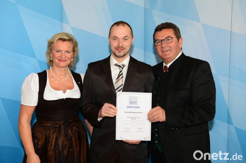 Sechs Betriebe und Einrichtungen in Bayern haben in diesem Jahr die Anforderungen für den GastroManagementPass (GMP) erfüllt. Darunter als einziger Betrieb aus dem Landkreis Neustadt/WN und der Stadt Weiden das Landhotel Goldenes Kreuz in Moosbach. Bayerns Wirtschafts- und Tourismusminister Franz Josef Pschierer und die Präsidentin des Bayerischen Hotel- und Gaststättenverbandes DEHOGA Bayern, Angela Inselkammer, haben in München