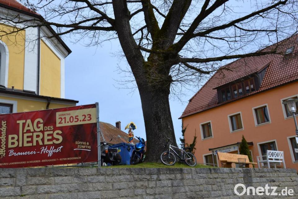 Recht kräftige junge Walperer waren offenbar in der Walpurgisnacht zum 1. Mai in Moosbach unterwegs. So mancher staunte nicht schlecht, was sich da am Marktplatz vor der Kirche so alles angesammelt hat. Vielleicht hatte der eine oder andere Besitzer seinen Verlust noch gar nicht bemerkt? Vom großen Plakat zum Tag des Bieres über schwere Sitzbänke und blaue Tonnen bis hin zu Fahrrädern und Motorrollern, die um den Baum standen, war alles vertreten. Auf dem Marktbrunnen stand sogar eine Vogeltränke mit einer versteckten Liebeserklärung.