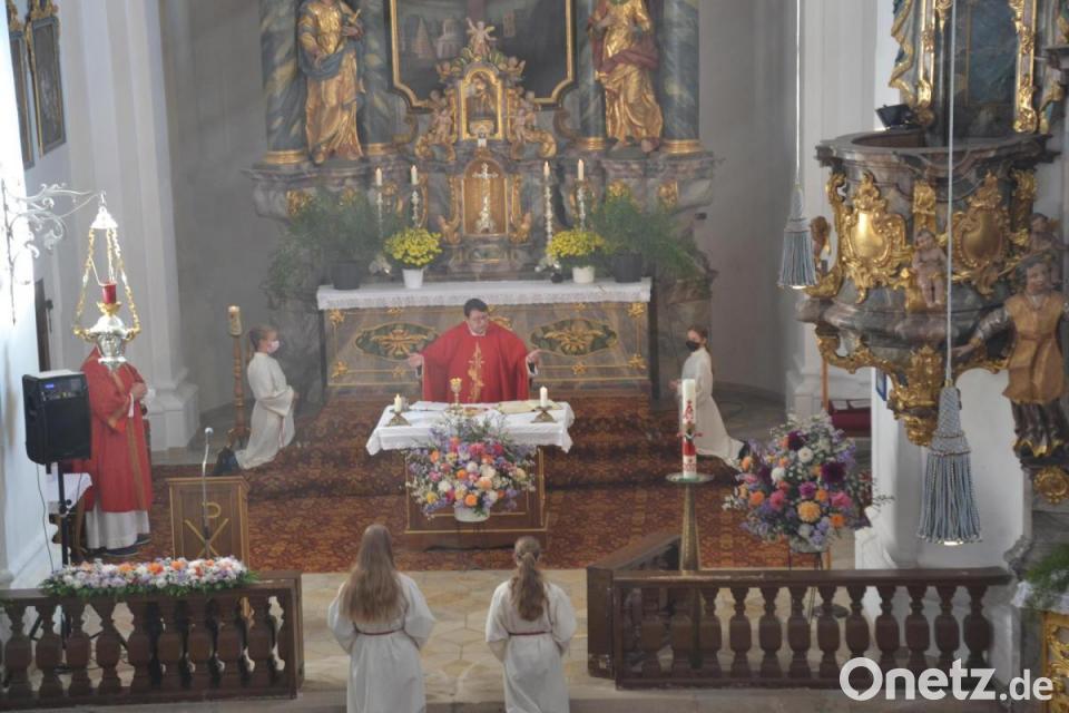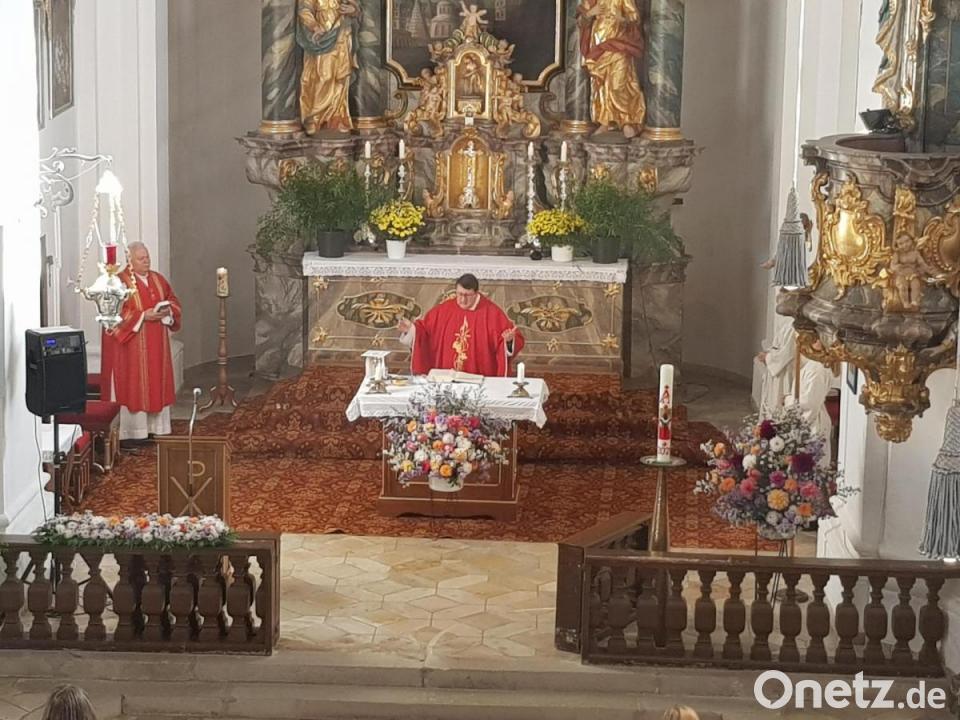 Das Übersetzungsfest wurde in der festlich geschmückten Moosbacher Wieskirche gefeiert. "Damit wird an dem Tag erinnert, an dem das Gnadenbild des gegeißelten Heilands feierlich in die neu erbaute Wieskirche übertragen wurde", sagte Pfarrer Udo Klösel. Mit Diakon Herbert Sturm hielt er den Festgottesdienst. Das Bläser-Ensemble stimmte großartig ein und gestaltete die Feier wie auch Lena Putzer an der Orgel mit. Die Lesung und Fürbitten trug Elisabeth Völkl und das Evangelium Diakon Sturm vor.