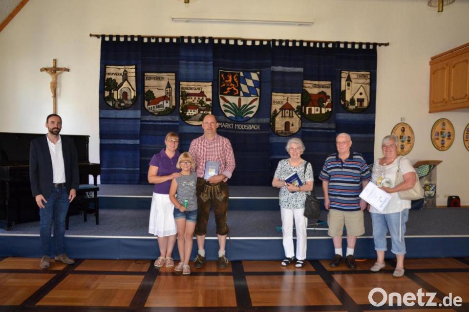 Nur Lob hörte Bürgermeister Armin Bulenda, als er sechs treue Urlauber im Rathaus empfing. „Drehen Sie bitte in Moosbach nicht am Preisniveau, denn dann hätte der Ort einen wichtigen Anreiz für die Gäste weniger“, warnten sie. Geschenke und Urkunden für langjährige Treue erhielten für den 5. Aufenthalt im Gasthaus „Zum Weißen Ross“ in Burgtreswitz Edith Klein aus Bad Hönningen, für den 25. Aufenthalt im Gasthaus „Zum Weißen Ross“ an Liesel und Werner Böhmer aus Neuwied und ebenfalls für den 25. Aufenthalt im Gasthaus „Zum Goldenen Hirschen“ in Tröbes an Heike und Lars Koglin mit Tochter Carmen aus Wuppertal. Koglin besucht seit 44 Jahren den Ferienort Tröbes. Schon als Kind war er mit seinen Eltern in Tröbes.