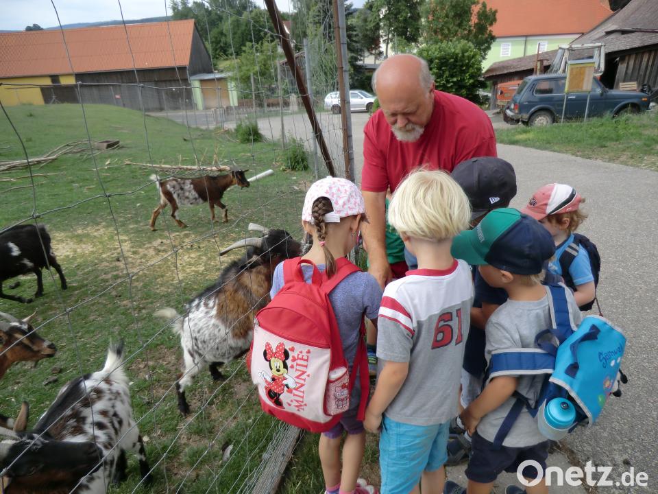 Am heißesten Tag der Woche erlebten die Kindergartenkinder, dass auch kühles Wasser ein kostbarer Schatz sein kann. Beim Kneippbecken packten sie die Badesachen aus und genossen das kühle Nass. Auf dem Weg zum Kurpark liegt der Hof von Kindergarten-Hausmeister Wolfgang Piehler. Er lud die Gruppe ein und zeigte ihnen Ziegen, Tauben, Hühner mit ihren Küken, Entenküken, Hunde und sein Dammwild mit fünf gerade geborenen Kälbern. Piehler entführte seine kleinen Gäste auch ins Reich der Bienen und am Ende durften alle seinen leckeren Honig probieren.