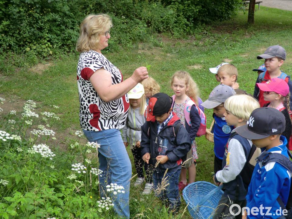 Mit Körbchen ausgerüstet, sammelten die Mädchen und Buben die verschiedensten Kräuter, mit denen sie Kräuterkarten bastelten. Dann ließen sich alle die mitgebrachten Brotzeiten schmecken und tranken eine selbst gemachte Kräuterlimonade. Mit selbst gebastelten Schatzkästchen bedankten sich die Kinder bei den Kräuterfrauen für einen interessanten Tag.