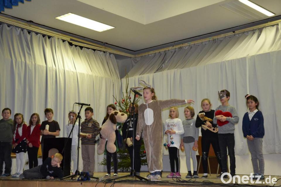 Die vierte Klasse unter der Leitung von Lehrerin Anja Scharnagl führte das Weihnachtsbuch „Das Eselchen und der Engel“ auf. „Fröhliche Weihnacht“ stimmte zum Abschluss nochmals der Schulchor ein. Rektor Ulrike Uhlemann dankte mit einem süßen Dankeschön all jenen die im Hintergrund agieren: Von der Mittagsbetreuung Vanessa Rudloff und Erika Zenk, den Reinigungskräften, den Lesepatinnen sowie Musikschulleiter Wolfgang Ziegler. Ein weiterer Dank ging an Hausmeister Wolfgang Piehler und Sekretärin Monika Lang.