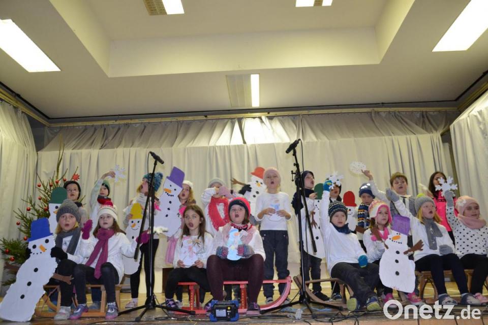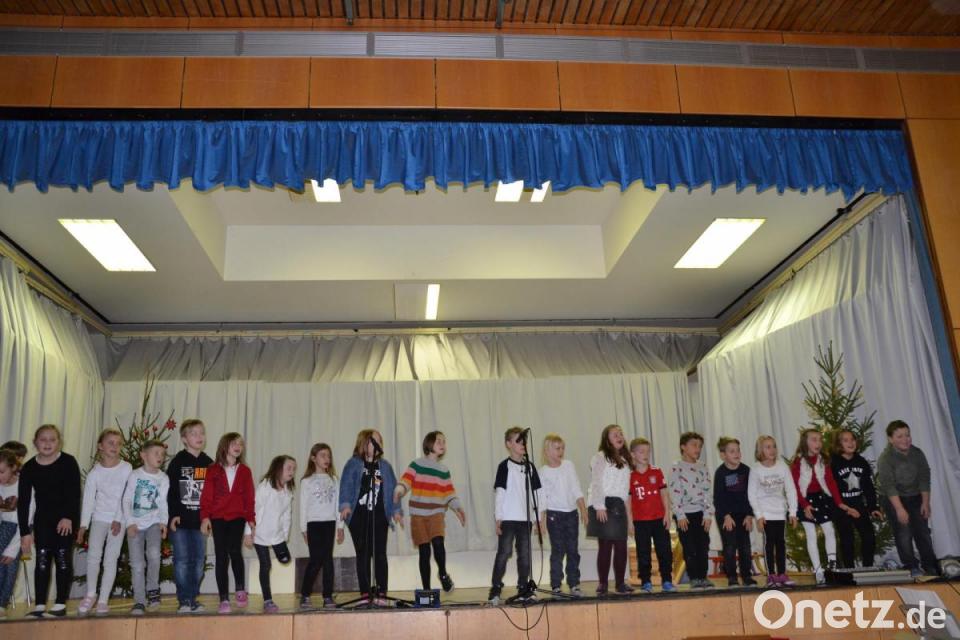 Rektorin Ulrike Uhlemann sagte, die Kinder wollten die Gäste zwei Stunden in eine ruhige Zeit entführen. Weiter stimmte sie die Großen und auch die Lehrer mit einem Gedicht "Weihnachtswünsche" von Helmut Zöpfl ein. Herzerfrischend sang der Schulchor „Schneeflocken“ begleitet von Wolfgang Ziegler am E-Piano. Die erste Klasse von Roswitha Mühlhofer präsentierte auf der Bühne einen Tanz und sang dazu „Tragt in die Welt nun ein Licht“. Weiter sangen die Mädchen und Buben verkleidet mit Pudelmütze, Schal, Pappschneemann und Schlitten das Lied von den „Winterkindern“, denn sie alle warten auf den ersten Schnee. Abwechselnd sagte die zweite Klasse von Susanne Staudinger ein Gedicht auf: „Sternchen helfen den Weihnachtsmann“. Musikalisch und rhythmisch ging es mit einem Tanz der Wichtel zur Weihnachtszeit weiter.