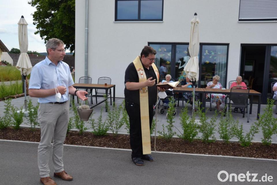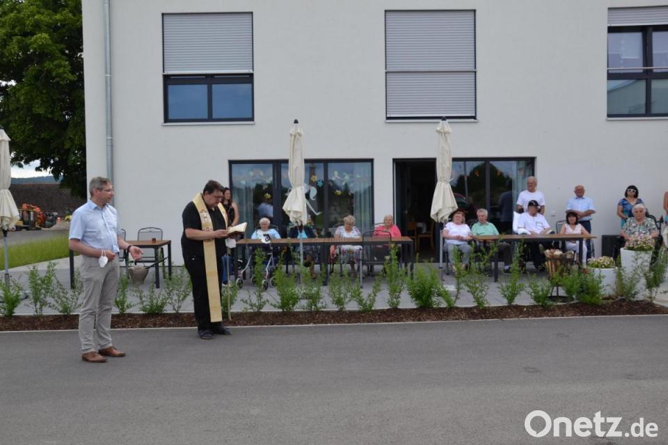 Bereits am 2. November 2020 wurde die Wohnanlage und Tagespflege an der Wieskirche eröffnet. Coronabedingt musste die Feier zum Schutz der Bewohner vorschoben werden. Nun konnte die Wohnanlage von Pfarrer Udo Klösel aus Moosbach die kirchliche Weihe erhalten. Mit dabei waren auch Bürgermeister Armin Bulenda sowie zahlreiche Gemeinderäte.