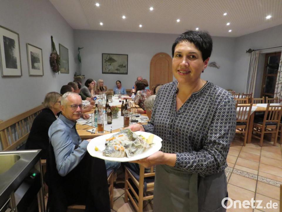 Es sei halt wieder nur der Mann abgebildet, sagt Manuela Bächer schmunzelnd. Wie immer, wenn es um Fische und ums Fischen gehe, kämen die Frauen stets zu kurz. Sie zeigt auf ein großformatiges Foto ihres Mannes Klaus Bächer, der mit einem mächtigen Karpfen in Händen aus einer ganzen Seite des Fachmagazins "Der Feinschmecker" heraus lacht. Die gesamte nächste Seite hat die Gourmetzeitschrift der Familie Bächer und ihrem Restaurant "Fischerstüberl" gewidmet.
