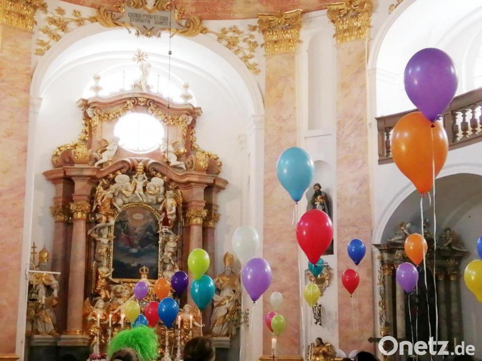 Während des Gottesdienstes besuchte die Pfarrangehörigen ein Clown. Er fragte die Kinder, ob man denn in der Kirche überhaupt lachen dürfe. "Denn Lachen ist wichtig und lachen hält gesund", sagte er. In seinem Korb hatte er Luftschlangen, Luftballons und Masken dabei: Diese könnten manchmal genauso kaputtgehen wie die Menschen und Freundschaften.
