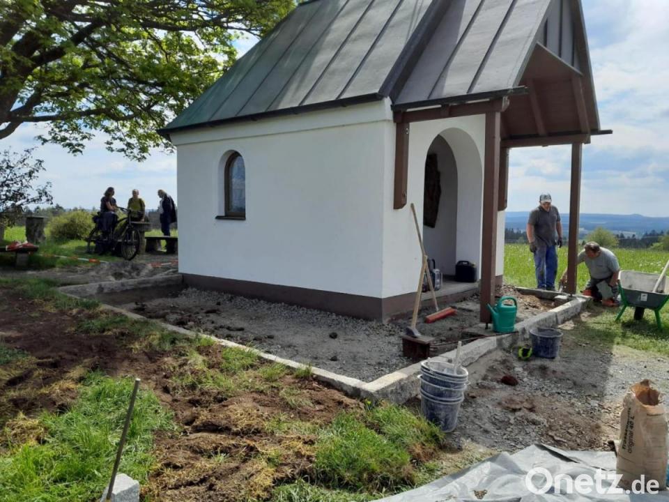 Beim letztjährigen Dreifaltigkeitsfest machte sich der OWV Theisseil-Muglhof Gedanken, wie man den Vorplatz der Kapelle beim „Birnbäuml“ begradigen könnte, um eine ebene Fläche zu für den Altar zum Gottesdienst zu erhalten. In den vergangenen Tagen setzten Mitglieder den Plan in die Tat um und pflasterten den Platz rund um das Kirchlein.