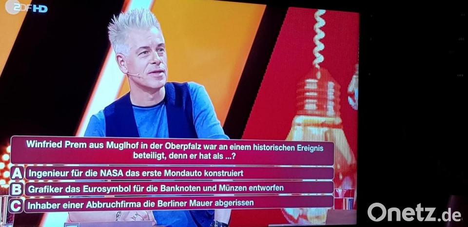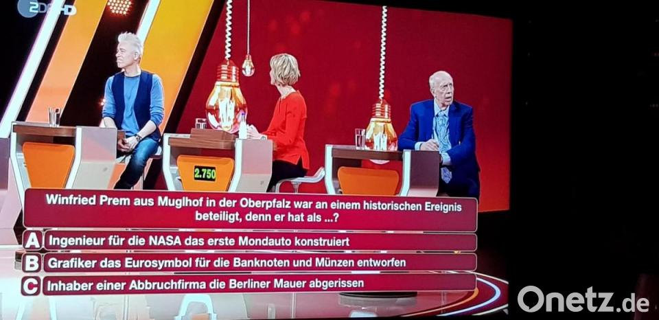 Das Rate-Team des Abends mit Petra Gerster, Michael Mittermaier und Reiner Calmund bekam die Frage gestellt, die lautete: „Winfried Prem aus Muglhof in der Oberpfalz war an einem historischen Ereignis beteiligt, denn er hat als…?“ Zur Auswahl standen folgende Antworten: „Ingenieur für die Nasa das erste Mondauto konstruiert, Grafiker das Eurosymbol für die Banknoten und Münzen entworfen oder als Inhaber einer Abbruchfirma die Berliner Mauer abgerissen.“