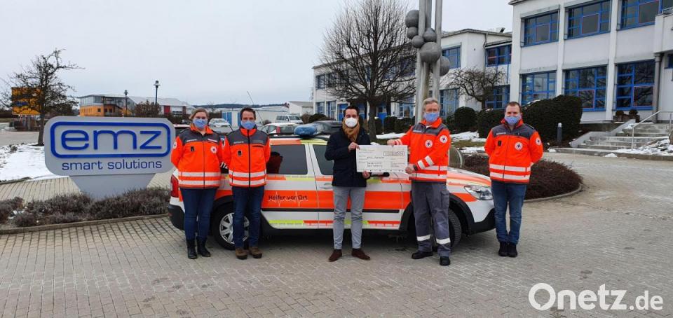 Über eine Spende durch die Firma EMZ freute sich die BRK-Bereitschaft. Markus Block überreichte einen Scheck über 5000 Euro zur Unterstützung des Helfer-vor-Ort-Dienstes. Herbert Zweck und Sebastian Hofmann erläuterten die Notwendigkeit dieser Einheit, denn alleine schon der vorgehaltene Defibrillator am Fahrzeug ist bei einem Herzkreislaufstillstand ein wichtiges Gerät, um einen Patienten erfolgreich wiederzubeleben. Hier zählt jede Minute.