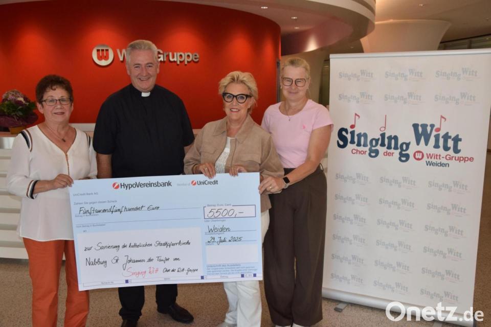 Nabburgs Stadtpfarrer Hannes Lorenz betonte die Bedeutung der Stadtpfarrkirche. Die Pfarrei muss 1,5 bis 2 Millionen Euro zur Sanierung beitragen. Vor vier Jahren wurde ein Spendenkonto eröffnet, auf dem mittlerweile 200.000 Euro eingegangen sind. Die 5.500 Euro von Singing-Witt sind ein weiterer finanzieller Baustein.