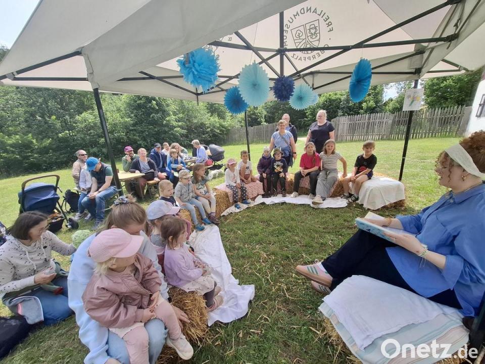 Im Mühlengarten trafen sich die kleinen Museumsbesucher und steuerten die in der Runde aufgestellten Strohballen der Märchenerzählerin an. Werksstudentin und angehende Museumspädagogin Felicitas Hölzl begrüßte freudestrahlend ihre Märchenliebhaber und hatte drei Geschichten zur Auswahl. „Die Mühle auf dem Meeresgrund“ hieß der Titel eines Buches, welches die 23-Jährige aus Trisching zur Hand nahm. Mit ihrer wohlklingenden Stimme las sie von einem armen Bruder vor, der von seinem reichen Bruder eine Mühle geschenkt bekam, welche ein teuflisches Geheimnis verbarg. Mit viel Applaus und einem dazu passenden Bild zum Ausmalen verabschiedete sich das junge Publikum oder freute sich auf zwei weitere Geschichten, die es zu hören gab: „Die kluge Bauerntochter“ und „Die kleine Meerjungfrau“.