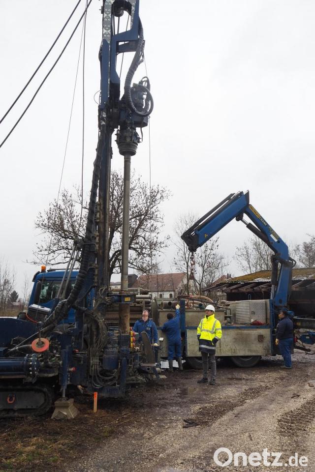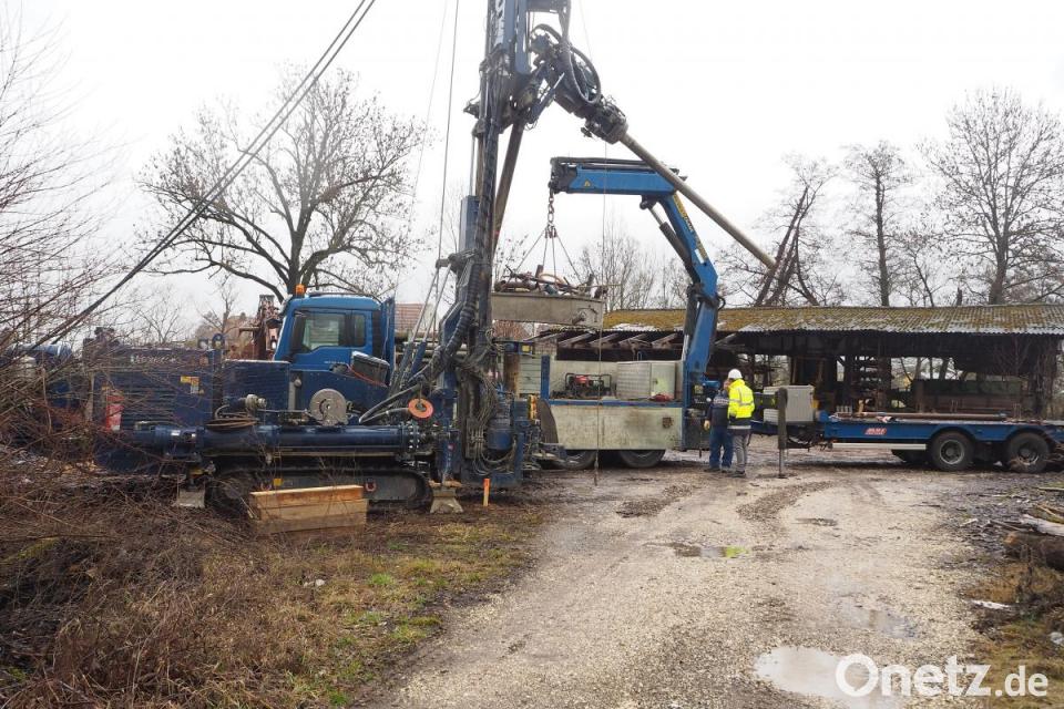 Der große Bohrer der Firma Baugrund Süd hat gerade den Bohrpunkt am Sportplatz hinter sich gelassen. Ein Transporter hat ihn zur Naabinsel gebracht, wo früher das Sägewerk Süß war. Fünf bis sechs Stunden lang wird er jetzt hier an einer Stelle im Boden wühlen. Was er zutage fördert, landet in Holzkisten und wird später im Labor untersucht.