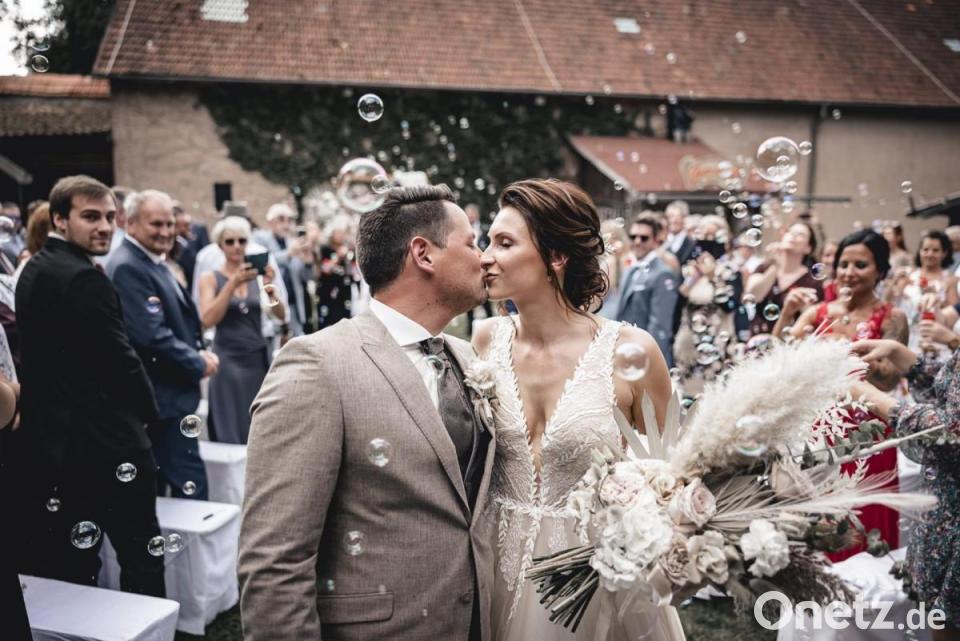 Bereits in der Planung war ihnen das Glück hold, denn erst im Oktober 2020 machten sie den letztmöglichen Termin auf Schloss Guteneck fest. Alle weiteren Vorbereitungen für die Hochzeit von Bastian Uhlig und Katharina Kloiber liefen ohne Absagen oder Probleme. Selbst die Coronazahlen waren nicht zu hoch, und so konnte das Brautpaar dann mit 130 Gästen vor herrlicher Kulisse im Schloss seine Hochzeit feiern. Bei der standesamtlichen Trauung überraschte der Nabburger Bürgermeister Frank Zeitler das Brautpaar mit ganz persönlichen und freundschaftlichen Worten. Die Freie Trauung fand bei strahlend blauem Himmel unter der Leitung von Dirk Dürholz statt.