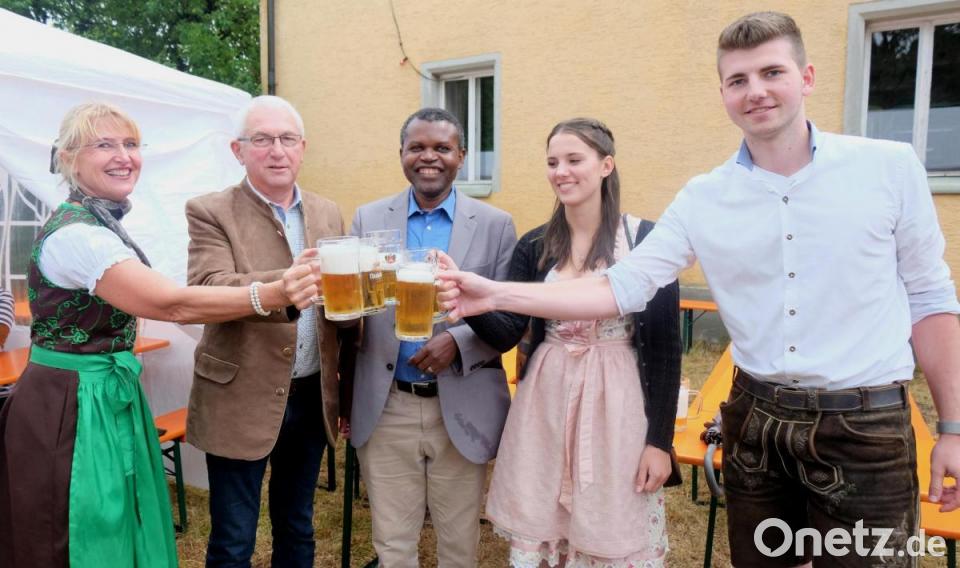 Tags darauf zelebrierte Pfarrvikar John Oguche mit der Dorfgemeinschaft und den Gästen in der Brudersdorfer Kirche den Gottesdienst, musikalisch mitgestaltet von der Familie Manner. An der Orgel saß Paul Pucher. Die Kirchweih, so der Geistliche in seiner Predigt, sei der Höhepunkt im Jahr und werde als Dorf- und Familienfest gefeiert. Sie sei nicht das Fest eines Gebäudes, sondern ein Fest der Gläubigen, ein Fest der Gemeinschaft. Der Priester zapfte im Beisein von Zweiten Bürgermeister Kurt Koppmann und Dritter Bürgermeisterin Heidi Eckl sowie der KLJB- Vorsitzenden Petra Schönberger und Thomas Flierl mit drei Schlägen das erste Fass im Freien an. John Oguche stieß mit Gästen und den Veranstaltern auf ein weiteres Gelingen der Kirwa an und fügt humorvoll hinzu: "Jetzt bin ich ein Bayer."