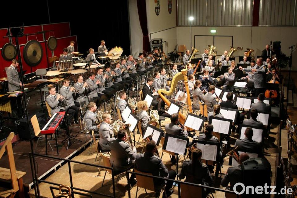 Mit dem Deutschlandlied endete das Konzert des 65-köpfigen Ensembles, das während seiner Tournee in der Nordgauhalle Halt machte. Der Erlös kommt der Nachwuchsausbildung der Jugendblaskapelle zugute.