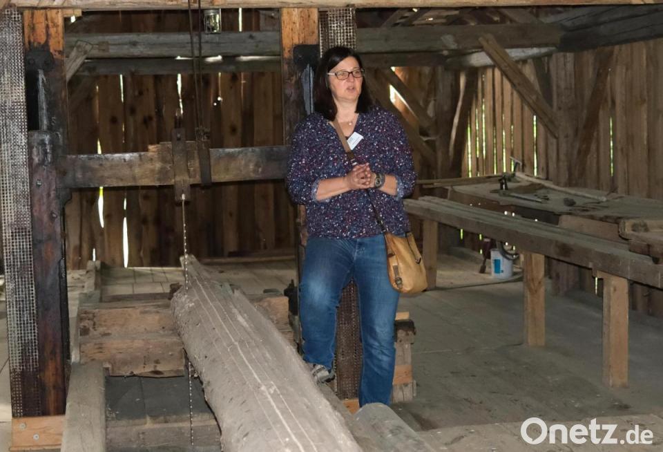 Vor zwölf Jahren machte Sabine Grötsch eine Ausbildung zur Gästeführerin und zeigt seitdem den Besuchern die Anlage in Neusath-Perschen. Am Pfingstmontag war sie für die Sägemühle "Pfaffengschwand" eingeteilt. Anlass war der 29. Deutsche Mühlentag, an dem sich auch das Freilandmuseum Oberpfalz beteiligte. Zahlreiche Familien mit Kindern und Ausflügler nutzten bei schönem Wetter die Gelegenheit zu einem Spaziergang durch das Gelände. In der Sägemühle tauchten sie ein in eine Zeit, in der die Lohnarbeiter die Baumstämme noch mit einer Seilwinde in das Gebäude zogen und mit Hilfe der Wasserkraft zu Brettern zersägten.