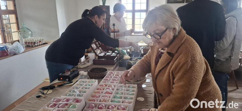 Damit das Eiersortiment für den Verkauf im Frühjahr bereitsteht, fertigt Alena Mrazková von Januar bis März etwa 900 Eier an. Für ein Ei benötigt sie etwa zehn Minuten. Sie grundiert die in verschiedenen Größen angebotenen Unikate mit Lackspray und bemalt sie mit Wachskreide oder Acrylfarbe. Die Eier, „Kraslice“ genannt, gelten als Symbol für „Leben“ und werden im Frühjahr als handgefertigte Kunstwerke verschenkt.