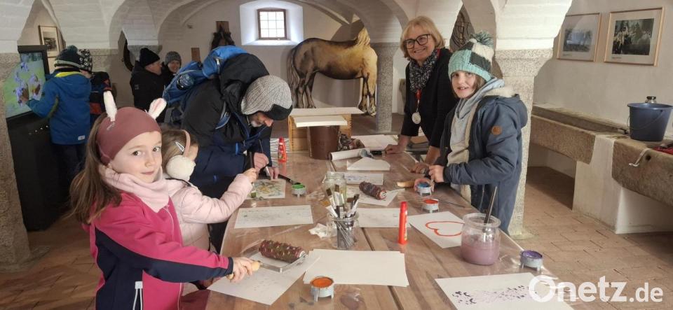 Auch die Museumslandwirtinnen haben ihren bayerischen Brauch an die Besucher weitergegeben. Sie zeigten, wie man Eier dekorativ mit Blätterdruck verziert und auf natürliche Weise durch Zwiebelschalen und Rote-Bete-Saft eine ansprechende Pastellfarbe erhält. Eifrige Gäste versuchten sich am Strukturwalzen für eine eigens angefertigte Osterkarte. Ganz im Sinne des Jahresmottos „Neu aufgerollt“ waren sie mit ihrem „Kunstwerk“ zumeist sehr zufrieden und nahmen es mit nach Hause, um es an Ostern mit einem Gruß an ihre Lieben zu verschenken.
