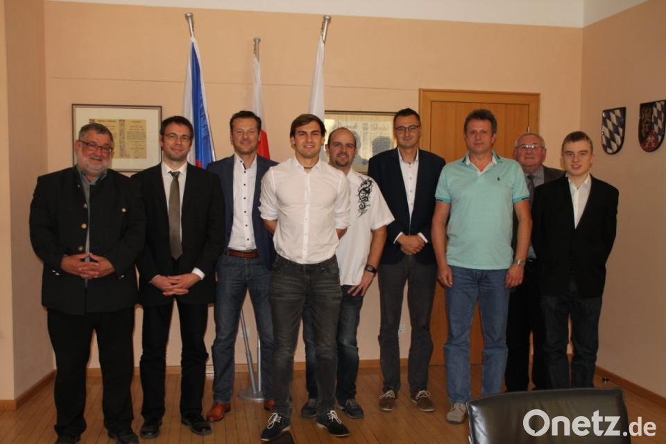 Bürgermeister Armin Schärtl empfing die Tischtennisspieler des TV 1880 Nabburg zu einer kleinen Feierstunde im Rathaus. Dabei gratulierte er ihnen zu der außergewöhnlichen sportlichen Leistung und wünschte viel Erfolg in der neuen Saison. Innerhalb von nur fünf Jahren gelang der Mannschaft der Durchmarsch von der ersten Kreisliga in die Landesliga. Hier treffen die Nabburger nun auf zahlreiche Mannschaften aus dem fränkischen Raum wie Nürnberg oder Arzberg. „Wir werden unser Bestes geben um die Klasse zu halten, auch wenn es schwer wird“, versprach Spielertrainer Alois Spitzer. Er lud Bürgermeister Schärtl ein, selbst einmal zu einem Heimspiel in die Nordgauhalle zu kommen und die Mannschaft anzufeuern. Schließlich durften sich alle Spieler noch in das Goldene Buch der Stadt eintragen. Abteilungsleiter Josef Fischer bedankte sich bei Bürgermeister Schärtl für die Einladung und die Würdigung der sportlichen Erfolge der Tischtennisabteilung. Ohne den großen persönlichen Einsatz der vielen Trainer und Betreuer wären diese nicht zu erreichen. Er dankte auch den Sponsoren, welche die Abteilung bei der Anschaffung von Trikots und Trainingsanzügen unterstützen. Besonders stolz ist Fischer, dass mit David Kiener, Christian Brabec und Markus Luber aktuell drei Spieler im Team stehen, welche das Tischtennisspielen von klein auf beim TV Nabburg erlernt haben.