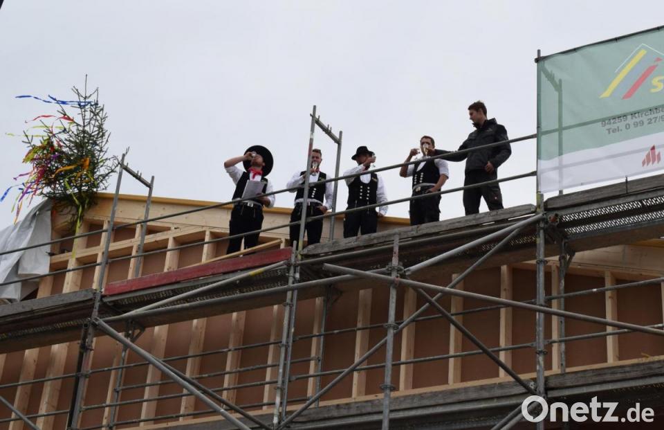 Dann war Zimmermann Thomas Schrönghammer mit seinem Richtspruch an der Reihe, der als Vorarbeiter der Firma Zimmerei Holzbau Schiller aus Kirchberg im Wald maßgeblich an der Fertigstellung des Rohbaus Verantwortung trug: „Der Herrgott möge seinen Segen allzeit dem Kindergarten geben und schenken allen Kindern drin stets einen guten, frohen Sinn!“
