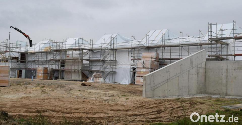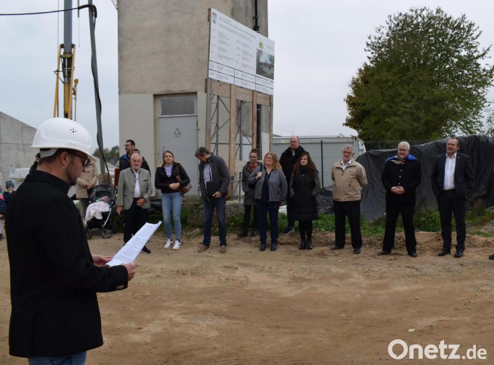 Erst im März dieses Jahres gab der Spatenstich den Startschuss für das neue Kinderhaus. Nun, sieben Monate später, steht an gleicher Stelle ein langgestrecktes Bauwerk, das seine spätere Schönheit noch hinter einer grauen Plastikhülle bedeckt hält. Der Grund dafür ist ganz einfach: Die Plastikfolie soll die darunter liegende Holzkonstruktion vor der Witterung schützen. Nun stand das Richtfest für das neue Kinderhaus im Terminkalender.