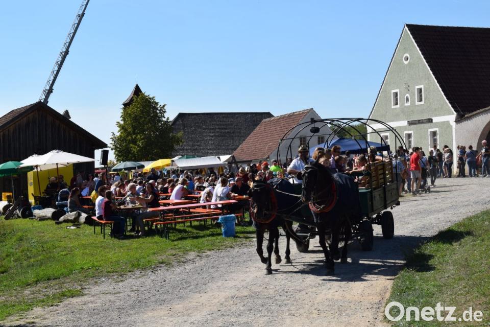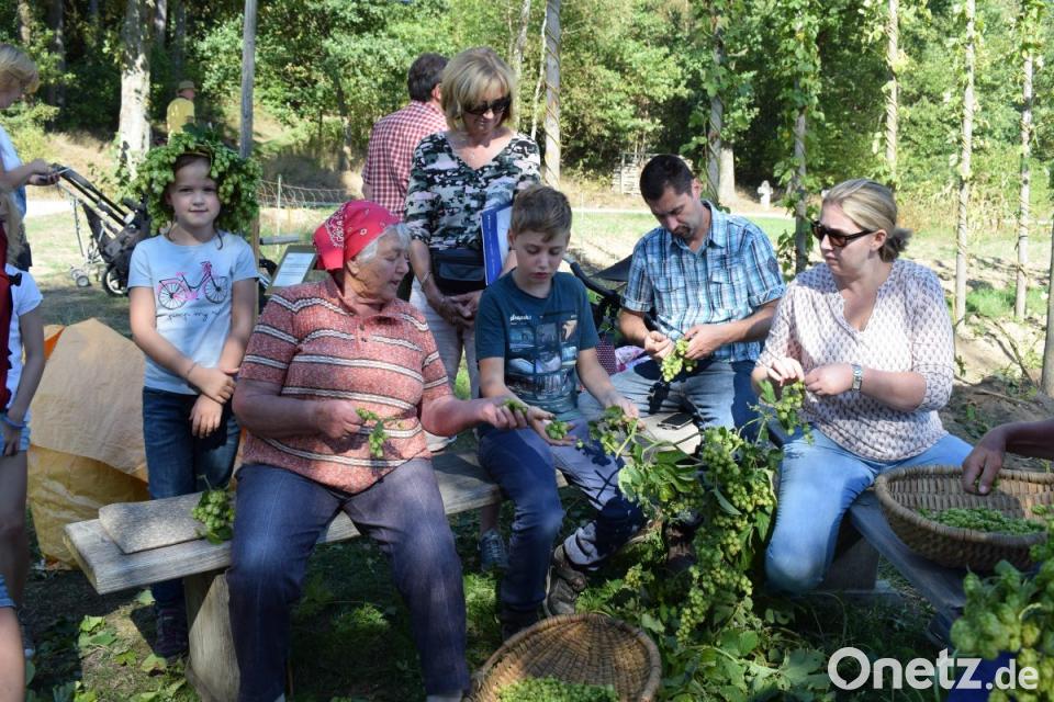 Gleich neben der Raiffeisenhalle standen historische Feuerwehrfahrzeuge aufgereiht. Im Hintergrund hörte man bereits die Kugeln über die historische Kegelbahn rollen. Ständig umringt von Kindern und Erwachsenen war die Kutsche mit ihren schwarzen Rössern, die zu einer Rundfahrt einlud. Im Schallerhof hatten die Kreativen zwei Möglichkeiten ihr Talent unter Beweis zu stellen. Zum einen konnten mit Kartoffeln Stofftaschen bedruckt werden oder an anderer Stelle entstanden gefilzte Freundschaftsbänder und Schmuck. Natürlich brauchte niemand Durst oder Hunger zu erleiden. Wer es etwas gemütlich angehen wollte, der konnte im Mühlental oder im Juradorf den Tieren zusehen oder an lauschigen Plätzen den herrlichen Sonnenschein genießen. Die Imker hatten im Waldlerdorf ihr Domizil aufgeschlagen. Hier gab es alles, was aus dem Bienenstock kommt. Im Bierland Bayern ist der Hopfenanbau von besonderer Bedeutung. Die Hallertau und das Hersbrucker und Spalt Land sind als Anbaugebiete bekannt. Doch auch in der Oberpfalz hat es früher überall Hopfenanbau gegeben. Seit einigen Jahren verfügt auch das Freilandmuseum über einen Hopfengarten, der jetzt in voller Blüte steht. Der Privatbrauer Jürgen Schnellinger zeigte zusammen mit den Museumsfrauen wie das Hopfenzupfen geht und hatte auch Informationen über das Bierbrauen. Zu guter Letzt konnte im Matzhof dem Besenbinder oder Rechenmacher über die Schulter geschaut werden.