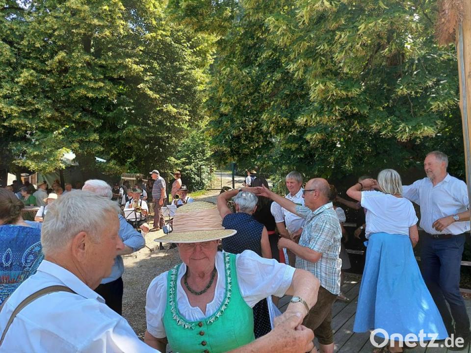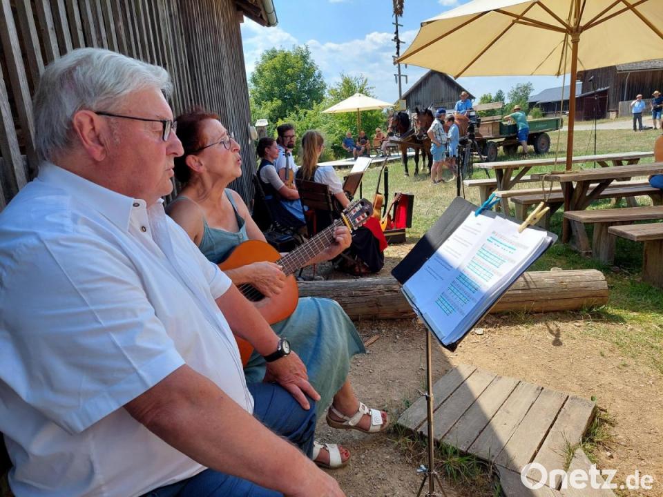 Die Sonne meinte es an diesem Sonntag mit über 30 Grad besonders gut. Trotz der heißen Temperaturen machten sich viele Volksmusikliebhaber auf den Weg nach Neusath ins Freilandmuseum. Schon im Eingangsbereich begrüßte Andreas Zwicknagel musikalisch auf dem Akkordeon die Gäste und bot Notenhefte mit alten Volksliedern und Gstanzln an. Im ersten Hof des Rundweges, dem Denkenbauernhof im Stiftlanddorf konnten sich Tänzer und Sangesfreudige mit der „Störnsteiner Tanzmusi“ schon mal auf die weiteren Etappen einstimmen. Einen Wegweiser brauchte man an diesem Tag nicht, denn die Klänge der einzelnen Musikgruppen gaben die Richtung vor. Der Amberger Zitherklub 1893 lud daneben im Matzhof zum Verweilen ein, und die „Zupfermoidln mit`m Gerhard“ aus Neustadt an der Waldnaab lockten ihre Fans zum Verweilen in den Kolbeckhof. Die Vierseithöfe boten viel Schatten, und so konnte man bei Kaffee und Kuchen schon einige Zeit gut aushalten und sich an den Darbietungen erfreuen. Volksmusikpflegerin Simone Lautenschlager spornte ihre Besucher im Mühlental zum Singen an und hatte dann schon nach kurzer Zeit einen Chor zusammen, der vom allerliebsten Schatz sang. Vor dem Wirtshaus Unterbürg reihten sich die „de Andern“ auf und freuten sich über die tanzfreudigen Paare, welche die Dreher rund um den Maibaum perfekt beherrschten. Das Bankerl um die Linde bei der Kegelbahn war voll besetzt. So bot es sich an, meinten die „Neualbenreuther Zwoi“, das Liebeslied „Unter den Linden“ von Walther von der Vogelweide zum Besten zu geben.