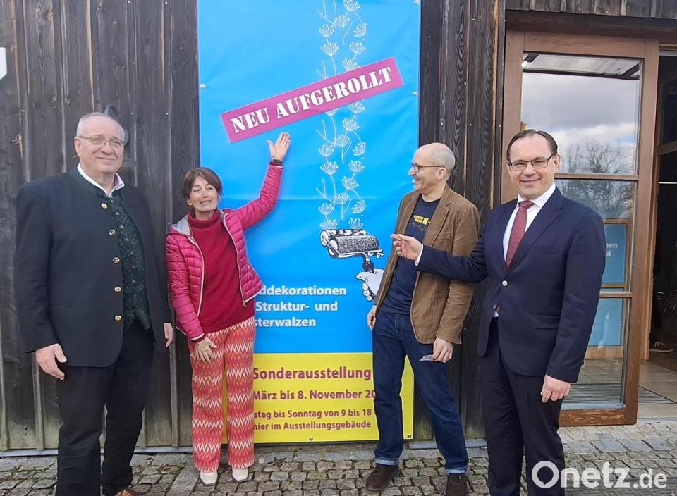 Bezirkstagspräsident Franz Löffler kam sogleich auf die Ausstellung zu sprechen, welche in zweierlei Hinsicht sehr spannend ist. „Früher waren die Musterwalzen sehr verbreitet, und viele Stuben und Wohnzimmer wurden mit einer schier unendlichen Formenvielfalt damit ausgemalt. Auch ich“, fügte er lächelnd bei, „kann mich noch daran erinnern.“ Er fragte sich und seine Zuhörer: „Was für ein Bild haben wir von der Vergangenheit im Kopf?“ Er höre oft: Sie sei grau und braun gewesen. „Aber auch früher wollten die Menschen Farbe in ihrem Leben haben.“ Grundsätzlich entstehe in den Köpfen eher ein Spiegelbild unserer Weltansicht. Wenn man sich so umsehe, stelle man fest, dass die Farben Grau, Schwarz oder Weiß dominierten. Gerade wenn die ganze Welt als Krise erscheine, wären seiner Überzeugung nach ein wenig mehr Farbe und Optimismus notwendig. Zumindest im Freilandmuseum Oberpfalz werde es 2026 wieder ziemlich bunt zugehen, sagte er mit Verein auf die geplanten Angebote, Veranstaltungen, Workshops, Ferienprogramme und Führungen.