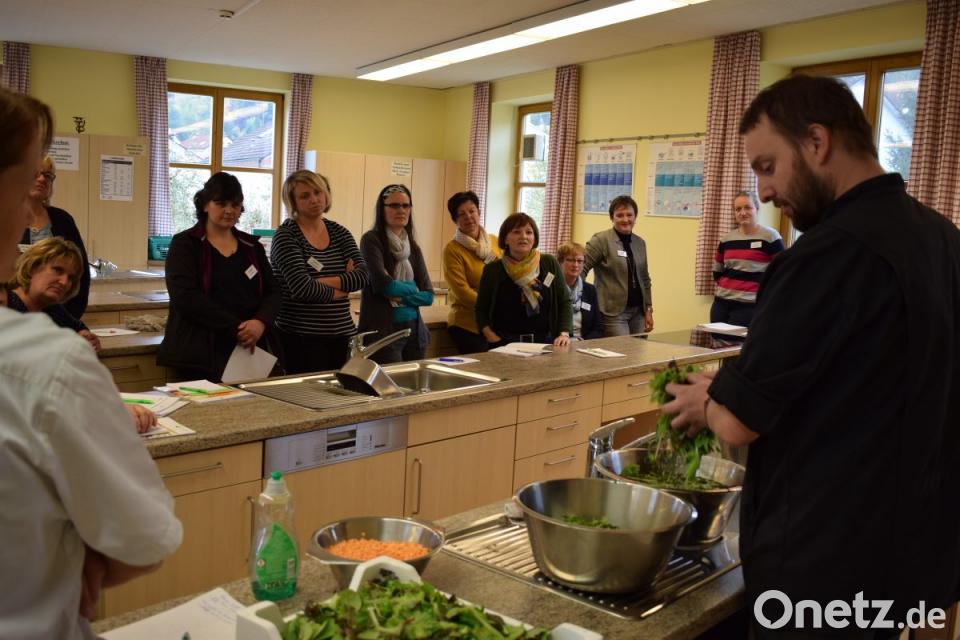 Die vielfältigen Einsatzmöglichkeiten in der Küche wurden praxisnah im Rezeptteil aufgezeigt. Sowohl altbekannte Gerichte als auch neue, pfiffige Kreationen können einen Speiseplan ungewöhnlich bereichern. Bei der Zubereitung eines schmackhaften Bohneneintopfes ließ sich Stefan Bergmann, der Küchenchef im “Kräuterbeck“, in den Kochtopf schauen. Sehr anschaulich berichtete er von seinen Erfahrungen mit Hülsenfrüchten und gab den Fachfrauen wertvolle Tipps bei deren Zubereitung. In den letzten Jahren finden Hülsenfrüchte vermehrt Anwendung in Produktinivationen, wie Lupineneis, neuartigen Sojaprodukten bis hin zu Erbsen- und Linsennudeln. Wer seine Gäste einmal mit einem Lupinenkaffee überrascht, wird sicherlich den „Aha-Effekt“ auf seiner Seite haben.