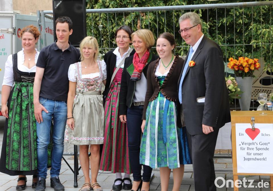 Nach dem Gottesdienst zogen die Vereine und zahlreichen Gäste im Festzug in den Spitalhof. Dort war die ganze Pfarrgemeinde zum Umtrunk eingeladen. Für Speis und Trank sorgten hier der Frauenbund, der Männerverein, die Feuerwehr Brudersdorf und das THW Nabburg. Und dass keine Langeweile aufkam, unterhielt "Harmonika-Franz" die vielen Gratulanten mit seinen Weisen.