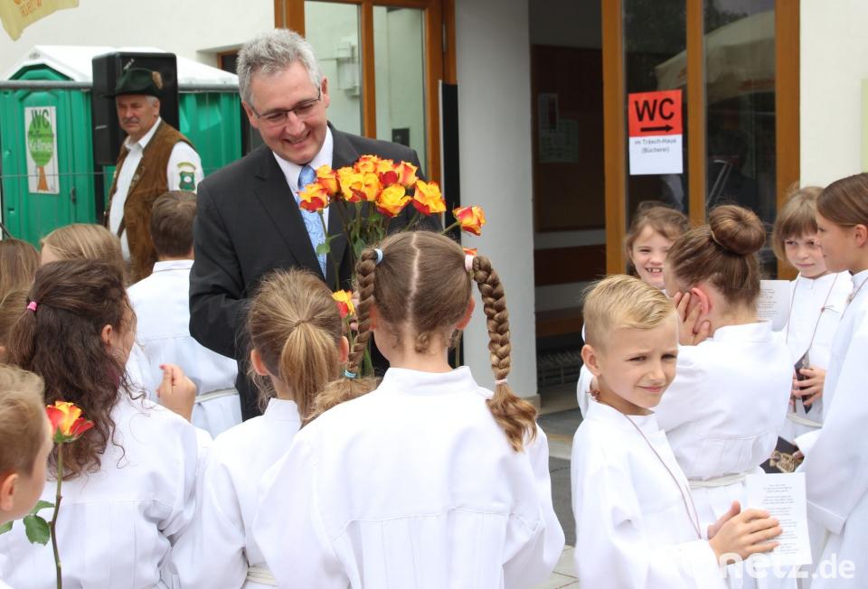 Er feierte "25 Jahre im Weinberg des Herrn" zusammen mit dem Patrozinium der Pfarrkirche Sankt Johannes. Dem Festgottesdienst ging ein Kirchenzug ab dem Unteren Markt voraus, zu dem sich alle kirchlichen und viele weltliche Vereine eingefunden hatten. Die Jugendblaskapelle unter Stabführung von Markus Ferstl geleitete ihn musikalisch zum "Johannesdom". Der festliche Gottesdienst wurde mitgestaltet vom Kirchenchor, Effata und dem Kinderchor. Die Kleinen der beiden Kindergärten gratulierten mit dem Lied "Er lebe hoch." Für die Organisation zeichnete Tanja Raab vom Pfarrgemeinderat verantwortlich.