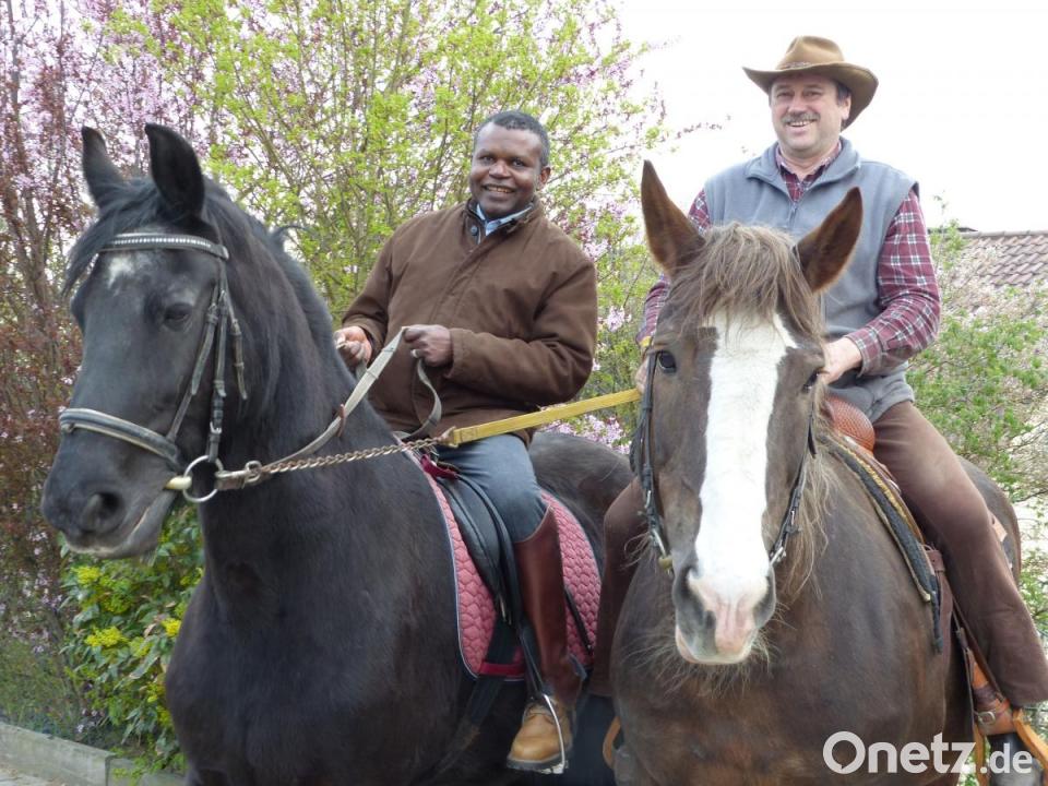 Über mehr als 25 Jahre nahm Petra Brunners verstorbener Mann Josef, der frühere Vorsitzende des Reitvereins, die Geistlichen gutmütig unter seine Fittiche und brachte ihnen in einer Reitstunde bei, wie sie das Pferd zum Gehen und vor allem auch zum Stehen bringen. Diese Aufgabe hat nun zweiter Vorsitzender Dieter Singer übernommen. Der Osterritt hat internationalen Touch: "Wir hatten schon einen Ukrainer und einen Österreicher", weiß Brunner. Nun sitzt mit John Oguche ein Nigerianer im Sattel - optisch eine Mischung aus Sänger-Legende Harry Belafonte und Top-Fußballer Sammy Kuffour. Zuhause durfte er als 17-Jähriger mal kurz auf ein Pferd steigen, erzählt John Oguche. Das war's. Ihn macht das nicht bange. "Ich vertrau auf Gott und Dieter", lacht er. Außerdem habe er "Begleitschutz".