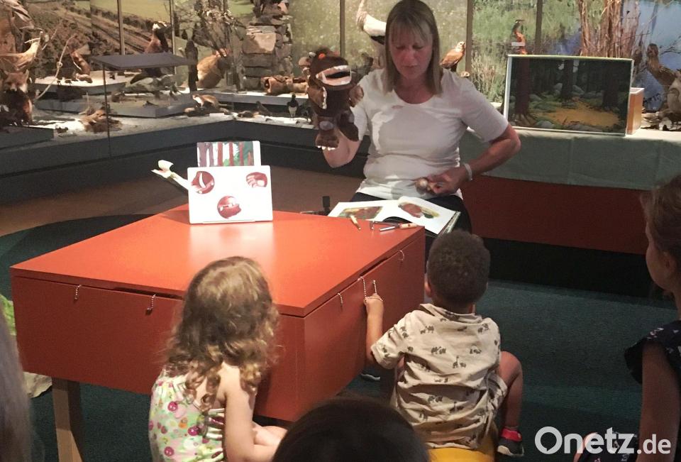 Die Kinderbuchfigur Grüffelo gibt sich bei der ersten Märchenstunde der Pfarrbücherei nach der Pandemie im Nabburger Zehentstadel die Ehre. Die junge Zuhörerschar kennt natürlich den Grüffelo und weiß schnell, mit welchem starken Freund die kleine, freche Maus ihren Widersachern droht. Conni Prey umrahmt die Lese-Einheiten zur Auflockerung mit Liedern. Das Stadtmuseum im Zehentstadel mit den dort präsentierten Wald- und Wildtieren bildet das passende Ambiente für die Geschichte "Der Wald ist voller Gefahren". Nach dieser gut besuchten Premiere nach den Corona-Lockdowns sind den Worten von Elfriede Jauernig vom ehrenamtlichen Bücherei-Team zufolge nach den Sommerferien wieder regelmäßige Märchenstunden in Planung. Die Termine in der Pfarrbücherei werden rechtzeitig bekannt gegeben.