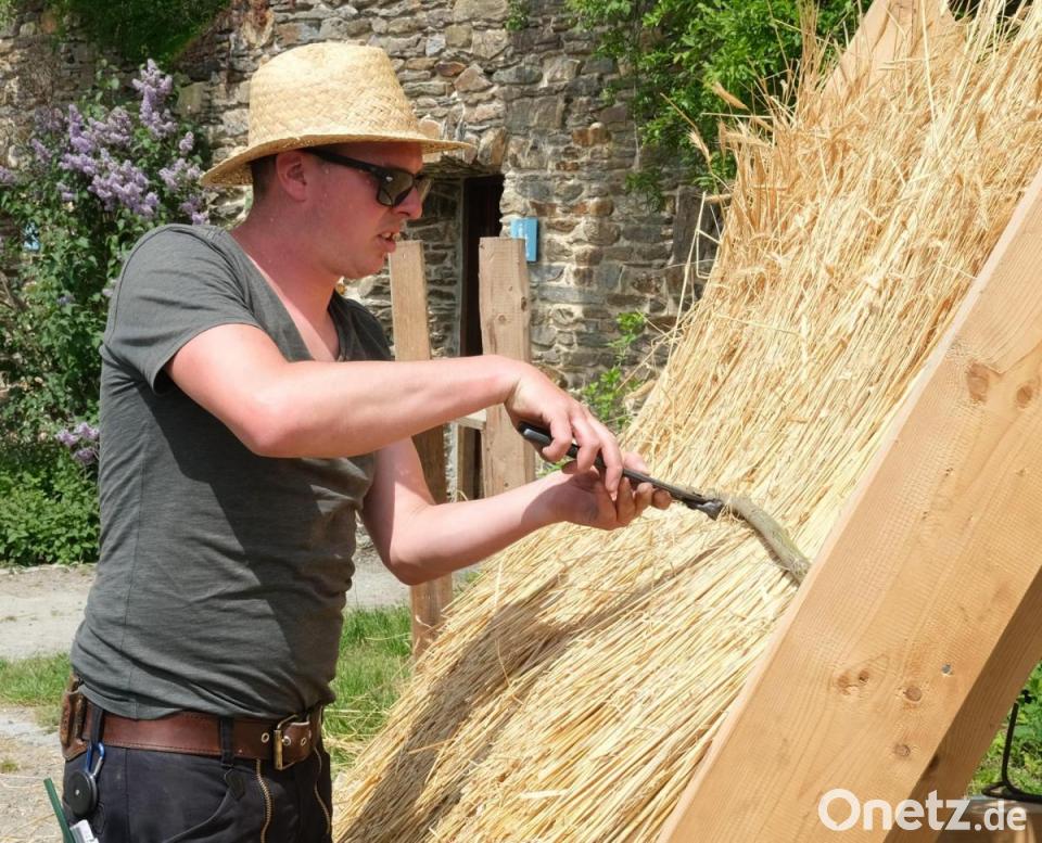 Internationaler Museumstag, Heimat-Erlebnistag, Bauhandwerkstag: Am Sonntag fielen gleich drei Thementage zusammen. Auf dem Gelände des Freilandmuseums Oberpfalz ließen sich die Museumshandwerker beim Decken von Strohdächern über die Schulter schauen und stellten Beispiele für nachhaltiges Bauen im ländlichen Raum vor.