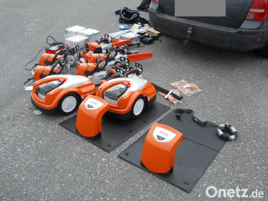 Zivilfahnder der Verkehrspolizei kontrollierten am Montag gegen 15.15 Uhr einen Wagen mit osteuropäischer Zulassung. Der VW-Kombi war mit drei männlichen Personen besetzt. Bei der Überprüfung stellten die Beamten untypischen Kraftstoffgeruch im Fahrzeuginneren fest. Eine darauffolgende Durchsuchung ergab einen unglaublichen Fund: Es tauchten mehrere neue Motorsägen, Wasserpumpen, Rasenmähroboter und sogar eine Außenbordmotor auf. Einen Eigentumsnachweis konnten die Insassen jedoch nicht führen. Durch intensive Recherche brachten die Fahnder heraus, dass die Gegenstände bei einem Diebstahl in der Nacht von Sonntag auf Montag in Frankreich entwendet worden waren. Die drei Tatverdächtigen wurden vorläufig festgenommen. Das Diebesgut in einem geschätzten Gesamtwert von 20 000 Euro wurde sichergestellt.