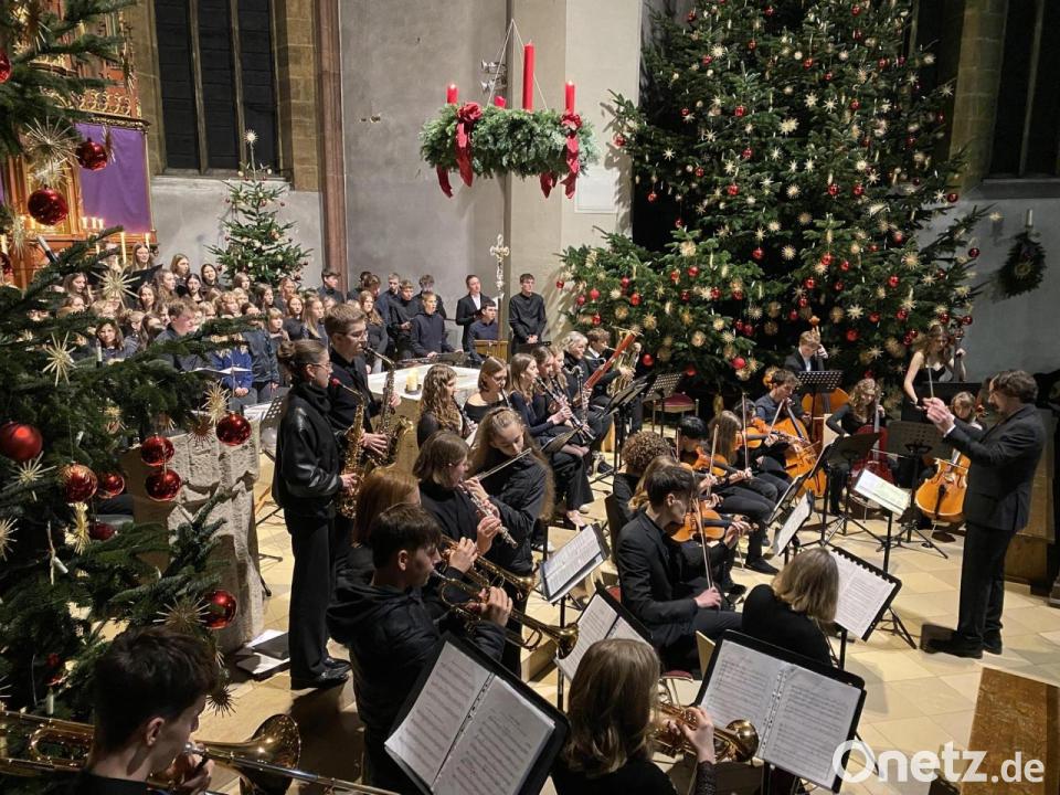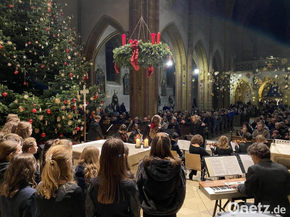 Nicht nur von den Schülern mit Spannung erwartet, trug das Vokalensemble der Lehrkräfte mit einer Motette und dem bekannten „In Dulci Jubilo“ in stimmlicher Klarheit zum Programm bei. Nach „Omnis Terra“ und „O Salutis Hostia“ erweiterte sich der gemischte Chor personell und ergänzt durch das Symphonieorchester zum Auftritt aller Akteure für das voluminöse Finalmedley „Carol Sing!“. Dem abschließenden, gemeinsam gesungenen „Macht hoch die Tür“ folgte lang anhaltender Applaus.