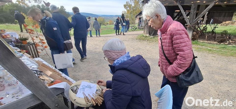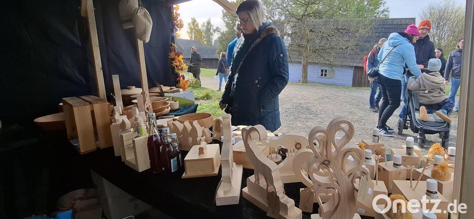 Es schien zwar die Sonne, und die Temperaturen waren gerade richtig für einen Museumsausflug, dennoch lud der duftende Apfelpunsch im Eingangsbereich schon gleich zu einem wärmenden Willkommenstrunk ein. Auch viele Standbetreiber hatten sich mit ihrem Angebot eher auf die kalte Jahreszeit eingestellt. Stricksachen wie Socken, Mützen, Handschuhe oder Schals sowie herbstliche Dekoration, Korbwaren und Herbstgestecke konnten die Besucher in sämtlichen Ausführungen erwerben.